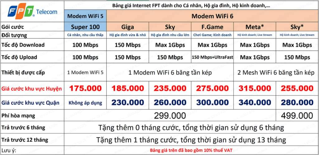 📋 Bảng Giá Gói Cước FPT Vũng Tàu